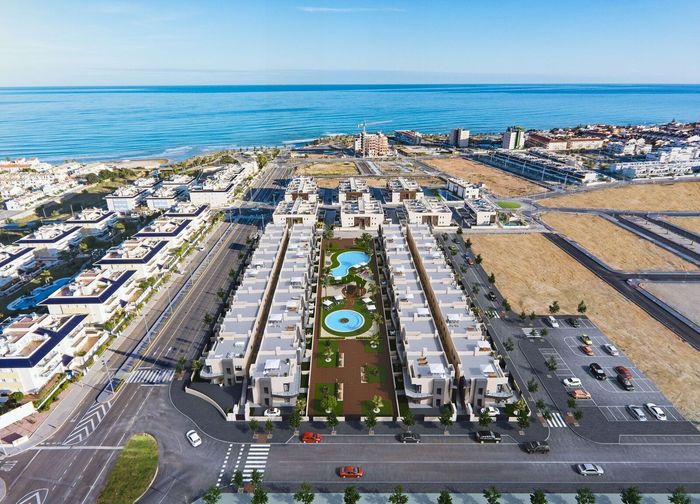 Here we have a the last remaining of ground floor and top floor apartments located walking distance to the beautiful beaches of the Costa Blanca. The properties will offer 1 bedroom, 1 bathroom, open plan living and dining area plus a spacious kitchen. The ground floor apartment will offer a 5sqm front terrace, 10sqm patio and a 90sqm private garden with off road parking. The top floor apartment will offer a private 49sqm roof solarium. The properties will be part a luxury community with communal pool, green bathing areas plus a child's play area.